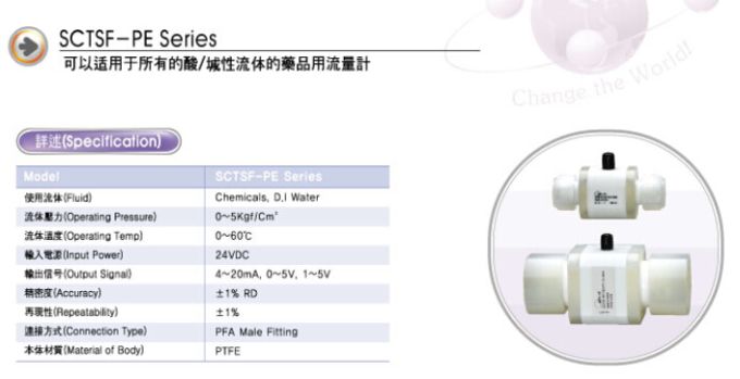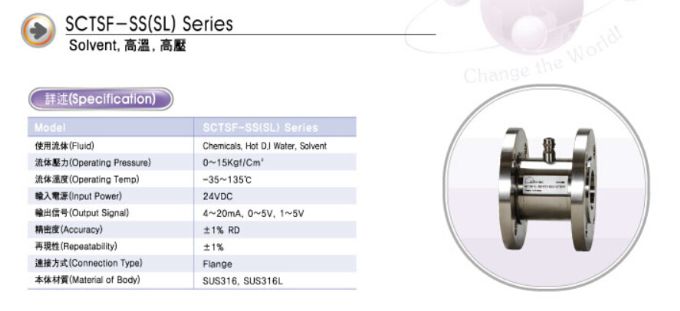 Characteristics (1)High accuracy even over wide range(within ±1%) 1.在广泛的区域内可以准确的测定流量 (2)Accurate even under changing conditions of flow 2.广泛对应流体的温度,粘度,及压力变化 Pressure &Temp (3)Highly stable and reliable by suing two section construction of turbine 3.机器的稳定性机器优秀的坚固性 (4)Excellent resistance to pressure fluctuation and fiction of fluids 4.耐压/耐磨损性性优秀 (5)Suitable for a wide range of high or low temperatures 5.高温/低温特性优秀 (6)Wide application 6.适用性较为广泛 (7)Suitable for use a acids and alkaline 7.优异的耐酸碱性能 (8)Easy to install and aopact design 8.便于安装的设计